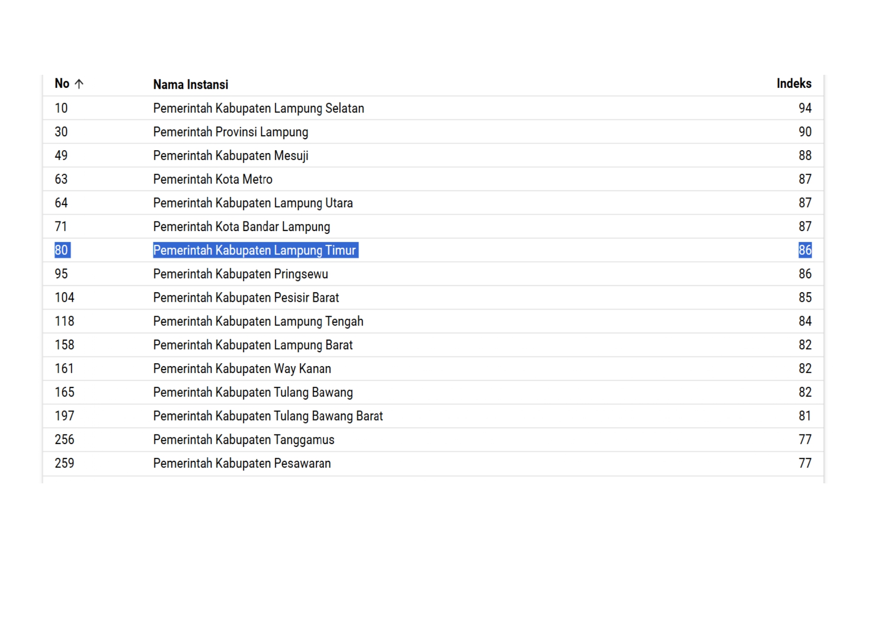 INSPEKTORAT.Lampungtimurkab.go.id-SUKADANA_KPK RI telah mengumumkan hasil penilaian MCSP KPK pada tanggal 16/12/2025, Inspektorat Kabupaten Lampung Timur dalam Penilaian MCSP KPK Pada Tahun 2025 memperoleh Indeks 86,28 dari 8 (delapan) Area Penilaian, 680 Dokumen, yang diunggah 641 Dokumen, Pada tahun 2025 MCSP KPK Inspektorat Kabupaten Lampung Timur mengalami kenaikan 5,15 dari tahun sebelumnya 2024 yaitu dengan Indeks 81,13. Berkat kerja sama semua instansi yang terkait MCSP KPK menghasilkan nilai yang diharapkan, semoga tahun kedepan dapat meningkat kembali.